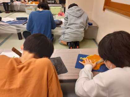 日光彫りの職人さんが日光彫りの方法を丁寧に教えて下さいました。みんな、職人さんのアドバイスを聞きながら、真剣に取り組んでいました。「楽しかった!」「職人さん、凄かった!」と子ども達も大満足な様子でした。