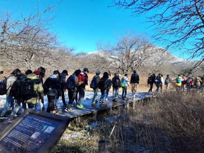 雲ひとつない青空のもとで歩くのは、とても気持ちがよいです。仲間がいると、気分もさらに良くなります♪今日も子ども達はたくさんの笑顔に溢れています。