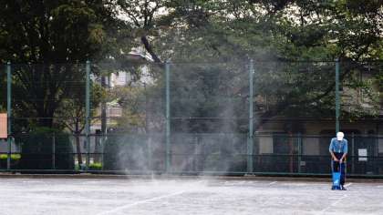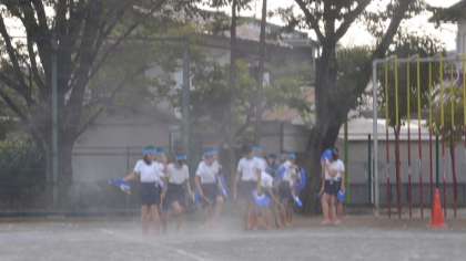演技の準備をしていたグループがつむじ風に巻き込まれました(下の写真)が、小規模だったため無事でした。