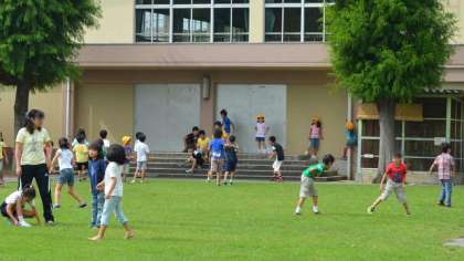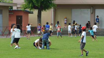 30日中休みのようすです。昨日から使えるようになった芝生は大人気です。特に低中学年が元気に遊んでいます。今日も裸足になって、芝のフワフワチクチクの感触を楽しんでいる子がいます。