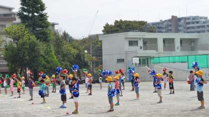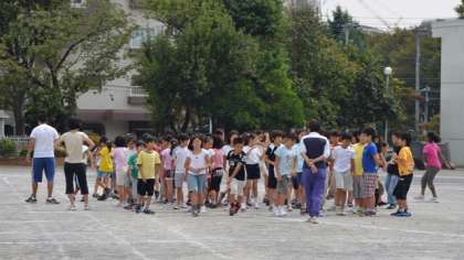 30日、明日の運動会に向けて各学年が念入りに最後の練習をしていました。体育着は家に持ち帰っているので、思い思いの格好で練習に参加している子どもたち。今日は演技や競技の手順を一つ一つ確かめることが目的ですから、ゆったりとした雰囲気で練習が行われているのが印象的です。