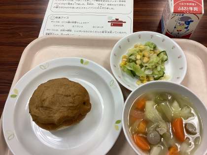 ビスキュイパンは、バター、たまご、小麦粉を混ぜたクッキー生地を、パンにのせて焼き上げました。今日は、「きな粉」を合わせて、きな粉の香りがふんわり効いたビスキュイパンに仕上がりました。
