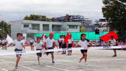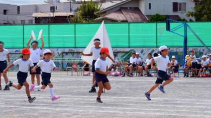 2年生は直線の50mを走ります。本校では走る前に一人一人の名前を読み上げます。それに大きな返事で応える子どもたち。走りも力強く元気な子どもたちです。