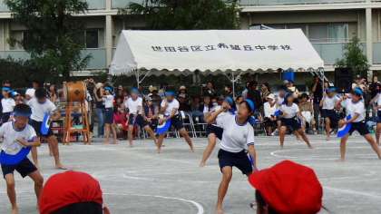 「みかぐら」で難しいのがもう一つ、太鼓です。軽快なリズム、複雑なリズムをたたくのは難しく、6年のみかぐらリーダーたちが一生懸命覚えました。担当のところをチームワークよく交代して打つ姿も見事です。希望丘の伝統として行っている「みかぐら」1〜4年生も次は私が・・・というあこがれと決意の気持ちをもてるすばらしい演技でした。来年は今の5年生が4年生に教えます。がんばりましょう。