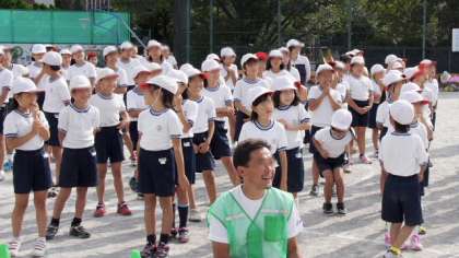 最後は閉会式。まず最初にお待ちかねの得点発表です。得点係が壇上に立ち、一桁目、3桁目を発表。みんなの目は得点板に注がれます。・・・結果は赤の優勝でした。