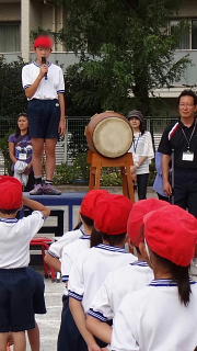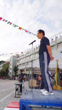 学校長から子どもたちへ「みんなが精一杯力を合わせてがんばった日本一、いや世界一の運動会」という賛辞を、そして保護者・地域の皆さんへの感謝の言葉を述べました。続いて児童代表の6年生が、「希望丘小学校での最後の運動会にふさわしい、心に残る運動会ができた」という喜びと、次のステップに向けての決意、支えてくれた教職員、保護者、地域の皆さんへの感謝の言葉を述べました。最後は「校歌」の斉唱です。
