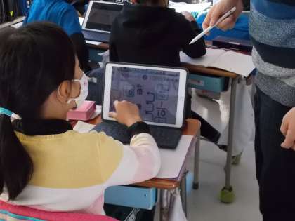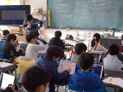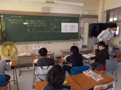 小数と整数の表し方の仕組みや、小数と整数の関係を数直線やタブレットを活用して調べたり考えたりしました。小数も整数と同じ位取りの仕組みで表せることに気付きました。