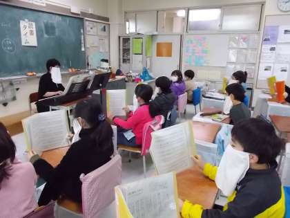 希望っ子ミニコンサートに向けて、しっかり楽譜を読みながら声を合わせて歌えるように練習しています。