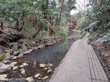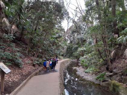 次の降車見学場所、等々力渓谷を歩きました。自然にふれることができました。