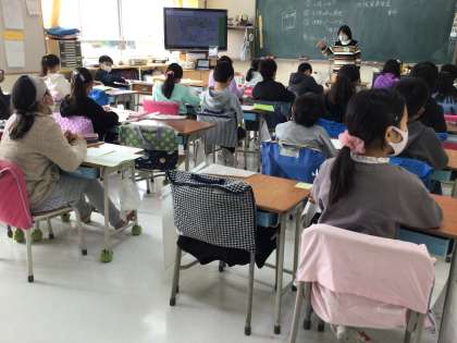 学区域内にある自然を維持する活動をしている船橋小径の会の方に来ていただき、お話をうかがいました。