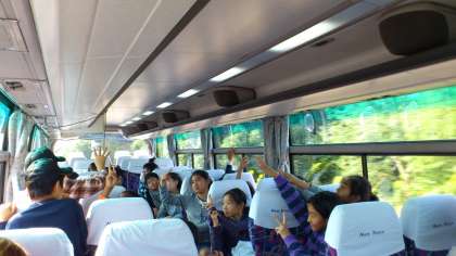 バスは順調に進み群馬県に入りました。バスレクは、王様じゃんけんをやっています。