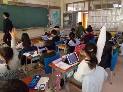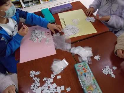 1000よりも大きい数の学習では、たくさんの紙の一円玉の数を数え、どうしたらわかりやすくなるか考えました。十、百、千のまとまりにするとよいことに気付き、まとまりの数を各位に書くことを学びました。