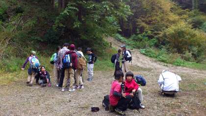 急斜面を抜けて林道に出たところで、休憩。トイレに列。我慢してたんですね。もう半分です。