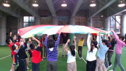 最後はパラバルーンです。これもみんなの気持ちがそろわないとできません。楽しかったの声がみんなからでました。よかったね!