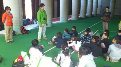 さあ、村めぐりです。今回はガイドさんに案内してもらいます。出発前にレクチャーをしてもらいました。みんなよく聞いています。