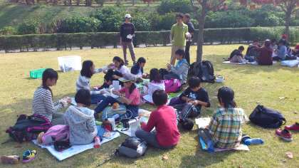 田園プラザの芝生でお弁当。おいしいよ!