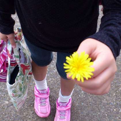 17日朝、正門で子どもたちを出迎えていると、一人の女の子が摘んできた花を見せてくれました。「えっ、タンポポ?」どうみてもタンポポです。調べてみると気温などの条件があえば秋でもタンポポは咲くのだそうです。皆さんも見つけてみてください。