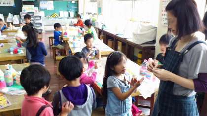 11月の展覧会に向けて作品づくりが急ピッチ。1年生もがんばっています。とてものびのびとした作品ができあがっています。