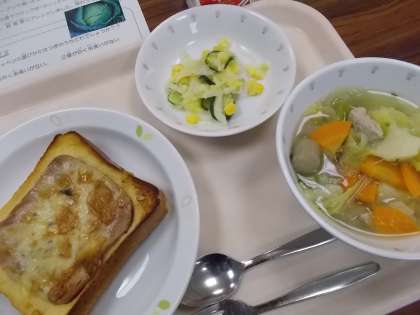 クロックムッシュは、パンにチーズを挟み、ホワイトソースを塗り、フライパンやオーブンで焼いた料理です。フランスの首都パリが発祥で、フランス語でクロックは「カリッとした」、ムッシュは「紳士」という意味です。給食風にアレンジました。