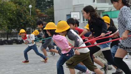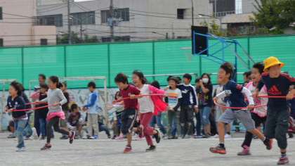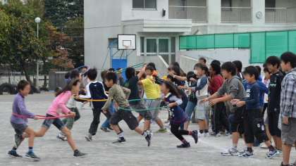 一緒に行ったゲームも、1年生から6年生まで、とても楽しく行うことができました。児童数が少ない本校にとっては、友達の輪を広げるまたとないチャンス。高学年もがんばりました。
