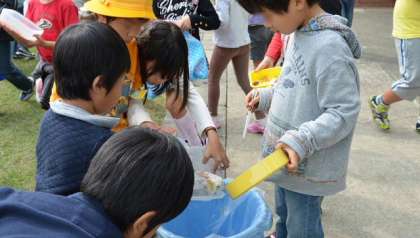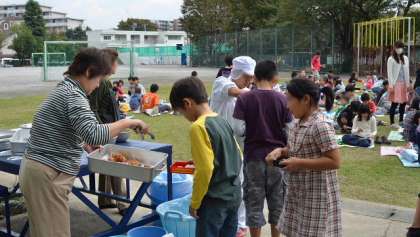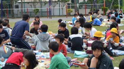 外で食べる給食は食もすすみ、おかわりをしにくる子も多くいました。ちなみにこの日のメニューは、わかめご飯、鮭の塩焼き、鶏の唐揚げ、おひたし、煮豆でした。片付けもしっかりやって、楽しい希望っ子班給食になりました。