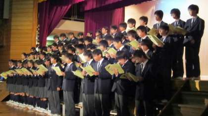 午前の部がすばらしかったので、午後も参観しました。最初は吹奏楽部の演奏です。クラシックからポピュラーまで幅広い演奏を聴かせてくれました。会場からもリズムに合わせて応援の手拍子が響きました。続いて2年生全員による迫力ある群読と合唱。力強く美しいハーモニーが体育館いっぱいに響き渡りました。最後に生徒会の活動報告と引き継ぎが行われ、中学校で生徒会ががんばっていることがよくわかりました。