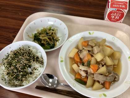 給食のふりかけは、全て熱を通して作ります。今日のふりかけは、ごま、じゃこ、混ぜ込みわかめ、青のりの4種類。どれも乾燥した状態で給食室に届きますが、その一つ一つをオーブンなども使って、一度全てに熱を通します。その後、一つに合わせた後に、もう一度、熱を通します。調味料は、一切入れません。熱を通すことで、より香ばしくもなり、温かいご飯にふりかけて、おいしくいただきます。