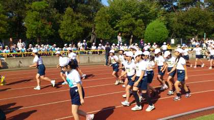 午前は女子の競技と男女400mリレーです。走り幅跳びで今日の1位に本校女子がはいりました。おめでとう。