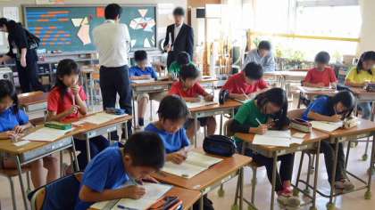 28日は4年生が大活躍の日。午後は算数の研究授業を行いました。この日は教育委員会の皆さんが参観に訪れ、子どもたちの真剣な授業ぶりを見ていただきました。2クラスが3グループに分かれて授業。四角形の面積をだす学習で、一人一人の考えを引き出すことにどのグループでも取り組みました。