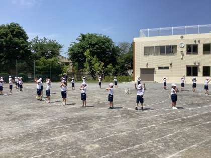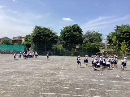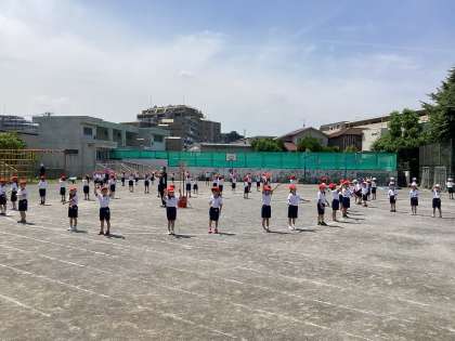 校庭に出て練習を始めました。今日は運動会の赤白の組み分けが各クラスで発表され、赤白に分かれて玉入れを行いました。校庭に出ると、踊りを忘れちゃったのかな…。少し緊張していましたが、玉をたくさん入れていました。来週はいよいよ本番。暑さ対策をしっかりして頑張っていきます!