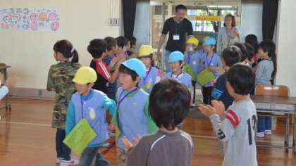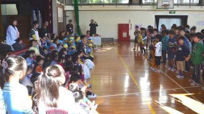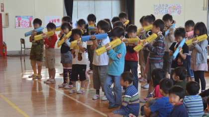 31日、近隣の希望丘保育園、西船橋保育園、ひだまり保育園、八幡山幼稚園の子どもたちを希望丘小学校にお招きして、「わくわくフェスティバル」を開催しました。これは、毎年恒例で、幼・保・小の連携をとって教育を進める試みです。1・2年生が生活科の時間を使って準備し、セレモニーやお楽しみコーナーまで子どもたちが準備しました。最初は、保育園、幼稚園の皆さんを迎えて、歓迎のセレモニーと2年生の演奏です。
