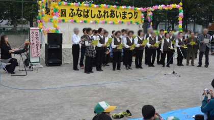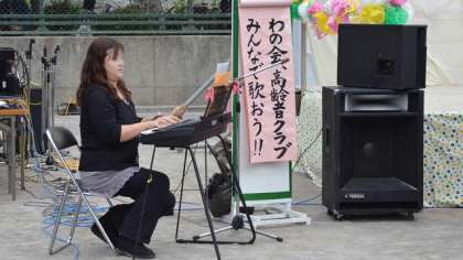 本校PTAも手作りコーナーで参加し、訪れた子どもたちに、牛乳パックやストローでおもちゃ作りを教えていました。ステージに戻ってみると、地もとのコーラスグループの伴奏者としてPTA会長さんが参加して大活躍。会場の皆さんと一緒に、懐かしい歌を歌いました。