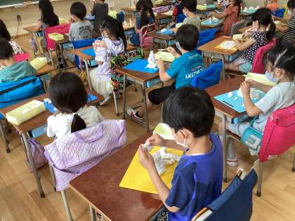 「みてみていっぱいつくったよ」と、思い思いに好きなものをたくさん作りました。できたら写真を撮って、大きくテレビに映しながら、ミニ発表会。どのクラスも「楽しかった」と活動を終えました。