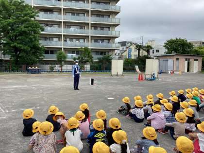 6月9日(木)、成城警察署の皆さんをお呼びして、校庭で交通安全教室が行いました。