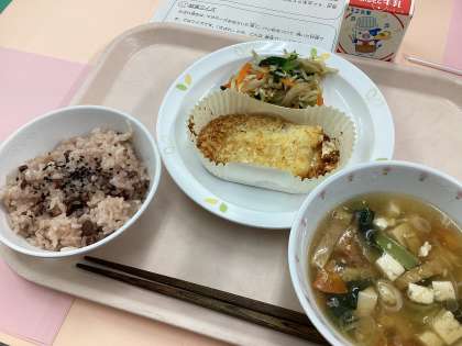 赤飯は記念日やお祭りなど、おめでたいときに食べるご飯です。元々は強飯(こわめし)という神前に供えるご飯が赤味がかっていたことに由来しているといわれています。小豆と一緒に炊くのは、赤味をつけるためです。今日は希望丘小学校の開校49周年です。お赤飯で、お祝いしましょう。