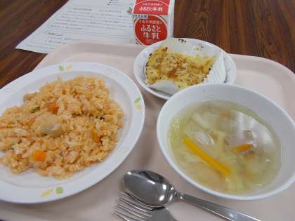 じゃがいもはでん粉が多いので、他の国では主食として食べられています。果物のようにビタミンCやカリウムが含まれているため、フランスではじゃがいものことを「大地のりんご」と呼んでいるそうです。ビタミンCは熱に弱い栄養素ですが、じゃがいもはでん粉が熱から守ってくれるので、効果的にビタミンCを摂ることができます。今日はじゃがいもを蒸して、玉ねぎやベーコンと合わせたものにチーズをかけて、オーブンで焼き上げました。