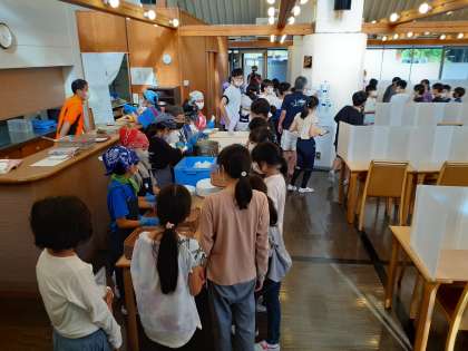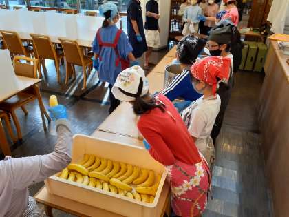 食事係が夕食の準備をし、配膳が始まりました。