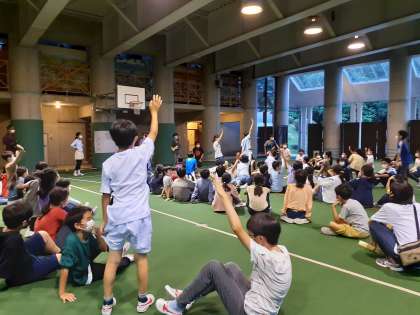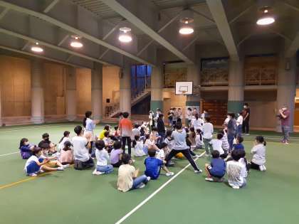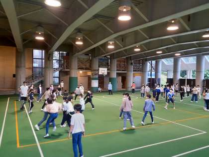 レク係の司会進行で、行動班対抗ドッヂボールと鬼ごっこが行われました。対戦の組み合わせ、得点、ルールが工夫されていて大盛り上がりでした!