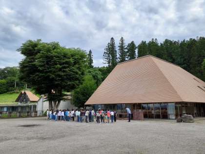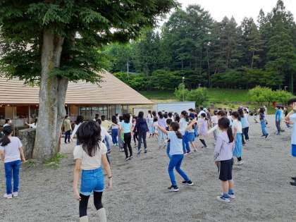 爽やかな屋外で朝会を行いました。子どもたちの顔も爽やかです。2日目も元気に安全に楽しみます!
