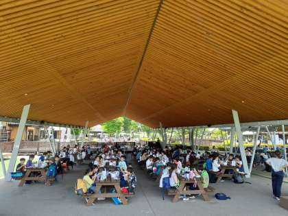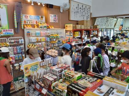 お待ちかねの田園プラザです。昼食をとり、行動班ごとにお土産を買いに行きました。魅力的な物が多く、予算内におさめるために悩みながらも買い物を楽しんでいました。