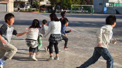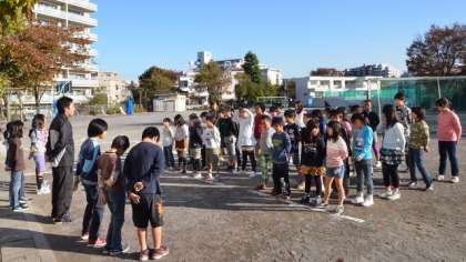 26日(金)6校時、4年1・2組合同で学年行事を行いました。「フェスティバル」と名付けた1回目です。校庭に集まり、4年生の進行役が司会をして開会式。はじめに「リレ選どろけい」をしました。「リレ選」というのはリレー選手のことで、運動会のリレー選手(つまり走るのが速い子どもたちが鬼になって「どろけい」をするというわけです。広い校庭いっぱいに逃げ回る子どもたち、それをものともせず、さすがリレ選たちは次々と捕まえます。元気いっぱいでとても楽しそうでした。