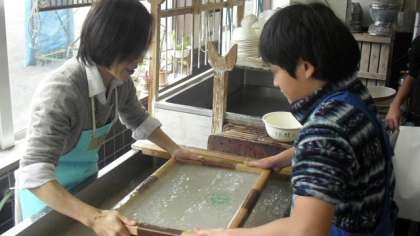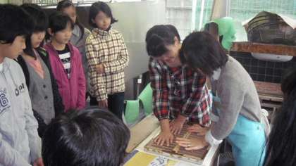 28日午前、6年生が区内山崎小学校にある伝統工芸室に朝早くから出かけて、卒業証書に使う和紙を自分の手で漉いてきました。伝統工芸室の指導員さんに教えていただき、一人一人心をこめて真剣に漉いてきました。難しい和紙の紙漉ですが、ていねいに教えていただき、どの子も上手にできました。漉きあがった和紙は卒業証書として印刷をして、一人一人の名前を入れて卒業式で手渡されます。