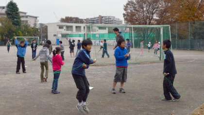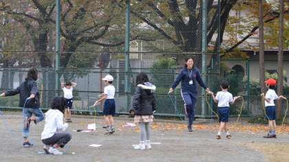 今週は「縄跳び週間」です。中休みの最初の5分間音楽を流して、みんなが縄跳びの技の向上のため練習します。28日の中休みも、どんよりした雲の下ですが、それを吹き飛ばすように、みんな元気に縄跳びをしました。