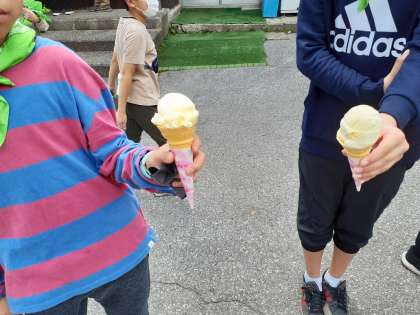 光徳牧場でアイスクリームをいただきます。冷たい甘いアイスクリームが疲れた体に染み渡ります。
