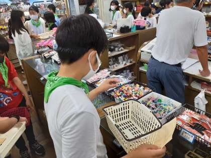 お楽しみのお土産タイムです。みんな上手に買い物をしていました。