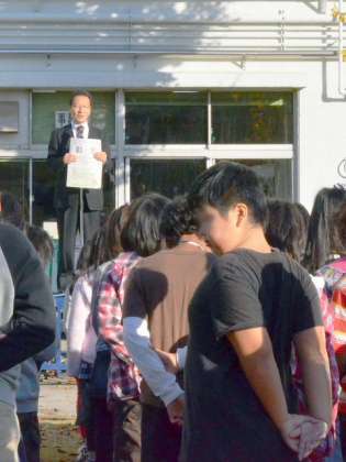 5日(月)の朝会は、世田谷区が取り組んでいる「人格の完成を目指して」12月の項目について話をしました。12月は各校の独自項目で、本校せは「勤労」です。師走といえば大掃除の季節。1年のほこりをぬぐって、気持ちを新たにして新年をむかえる時期です。それに合わせて学校の生活目標も「進んでそうじをしよう」になっています。働くということはどういうことなのか。人のために働くことの意義などについて話をしました。