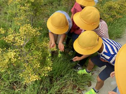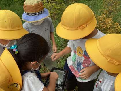 生活科の学習では、「いきものとなかよし」の学習に入りました。どんな生き物と仲良くなりたいか考えた後、希望丘小の校庭にはどんな生き物がいるのか調べてみよう!ということで、校庭に出て探してみました。班ごとに協力し合って探し、網を使ってトンボを捕まえて観察したり、草の中からカマキリを捕まえて観察したりするなど、たくさんの動物の触れ合うことができました。観察した後に、「かわいそうだから、放してあげなきゃ!」という動物を大切にする気持ちも忘れずに取り組みました。
