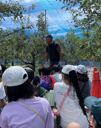 総合的な学習の時間の学習で、地域にあるリンゴ園(高橋果樹園)に行きました。はじめに農家の高橋さんから、リンゴ栽培の方法や工夫などについて教えてもらいました。子どもたちは、高橋さんの話を真剣に聞きながら、メモを取っていました。意欲的に質問をすることもできました。その後は待ちに待った収穫体験です。高橋さんに教えてもらったリンゴのもぎ方を思い出しながら、慎重にもぎとることができました。リンゴ園見学を通して、疑問に思ったことを解決することもできました。たくさんの学びができた校外学習でした。