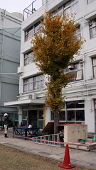 6日、校庭のイチョウの木を区の用務班の方に剪定してもらいました。今年は紅葉が例年より遅く、イチョウの黄色に色づき始めた葉が、まだ枝についたままでした。残念ながら予定変更することもできないので作業をしてもらいました。身軽に高い木の上に上って剪定作業をするのを見て、子どもたちも感心していました。寒い中作業ありがとうございました。