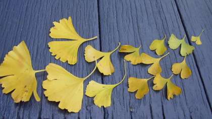 黄色く色づいた葉がもったいないような気がしたので、本校副校長が、ちょっとアートしてみました。いかがですか?